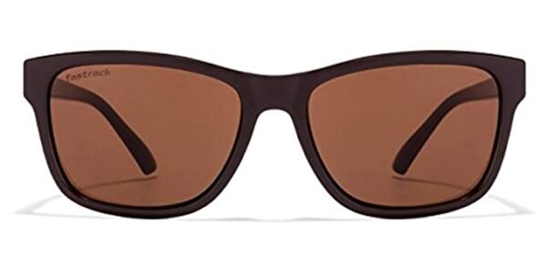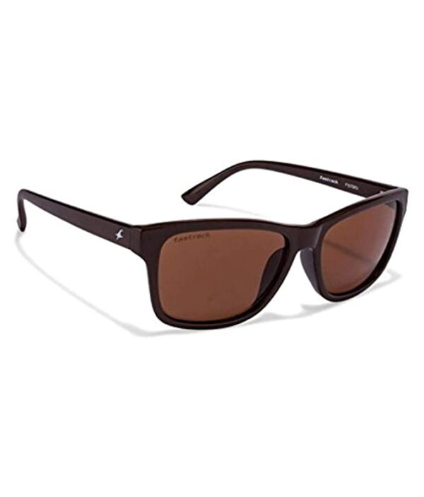 The product features a plastic frame and a brown lens color.