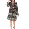 Vero Moda Women 100%Polyester Regular Fit 3/4 Sleeve Striped Black Shirt Dress